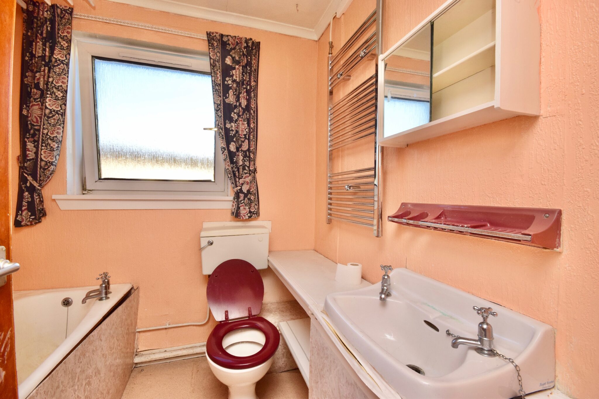 The property is in need of modernisation throughout; however, features include gas central heating, secure entry, double glazing throughout, a Juliet balcony from the living room, and a well-kept communal garden at the rear with a drying area.